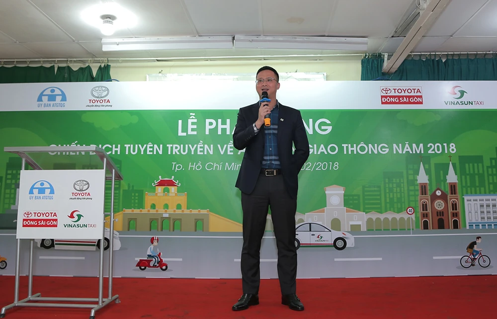 Ông Uông Việt Dũng - Phó Chánh VP Ủy ban ATGTQG phát biểu trong chiến dịch tuyên truyền về ATGT năm 2018 do TMV phát động