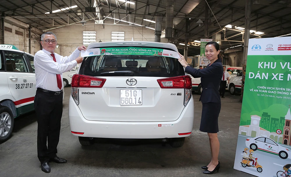 Song song với việc tuyên truyền các thông điệp ATGT trên kênh VOV giao thông, TMV đã phối hợp với Ủy ban ATGTQG cùng sự chung tay của 2 Đại lý TMV (Toyota Mỹ Đình và Toyota Đông Sài Gòn) và hai hãng taxi lớn tại Hà Nội và TP.HCM (taxi Group & Vinasun taxi) sử dụng áp phích tuyên truyền trên các xe taxi với thông điệp ý nghĩa “Lái xe an toàn, cuộc sống an vui” kể từ ngày 7-2. Bên cạnh đó, các tài xế thuộc taxi Group và Vinasun taxi cũng có cơ hội nâng cao kiến thức và kỹ năng lái xe an toàn dưới sự hướng dẫn của các giảng viên đào tạo lái xe an toàn TMV.
