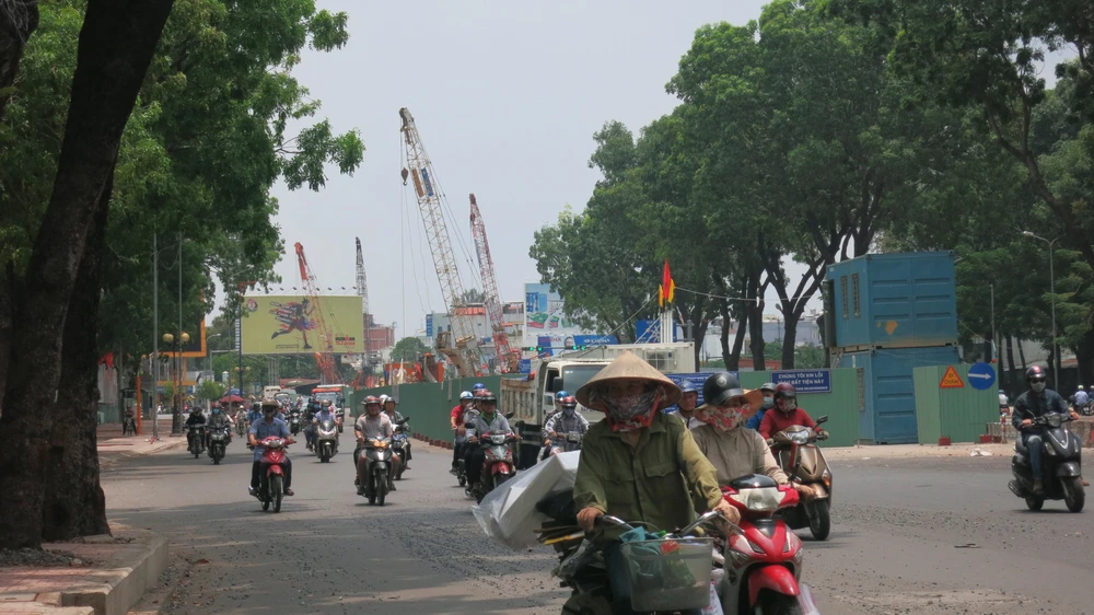 TP đang tập trung xây cầu vượt nút Nguyễn Kiệm, quận Gò Vấp, để giải tỏa ùn tắc giao thông. Ảnh: GH