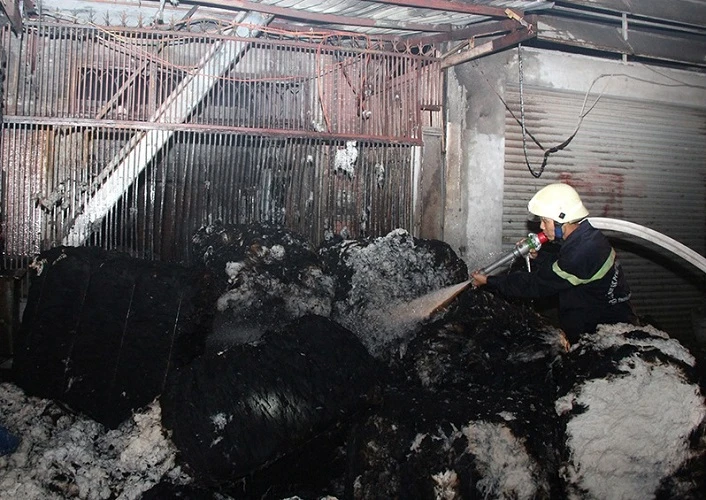Xưởng sản xuất bông gòn bốc cháy