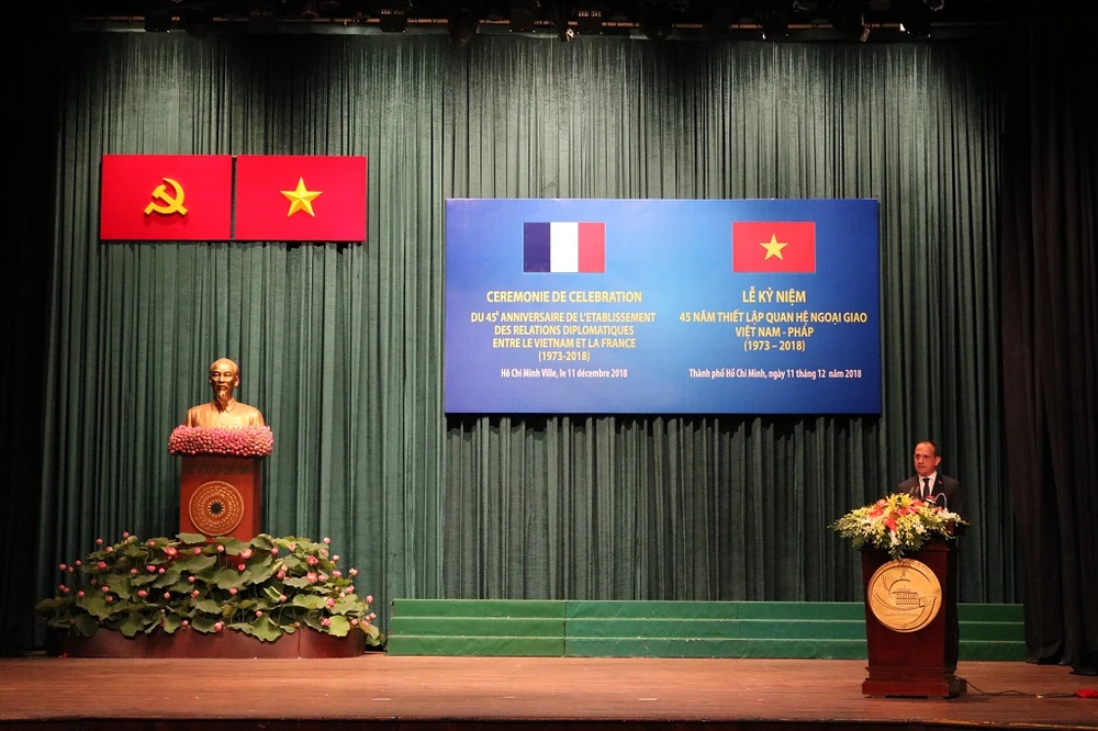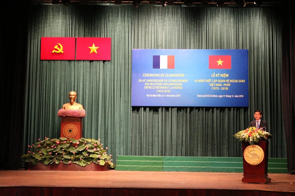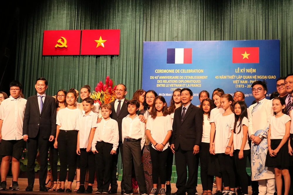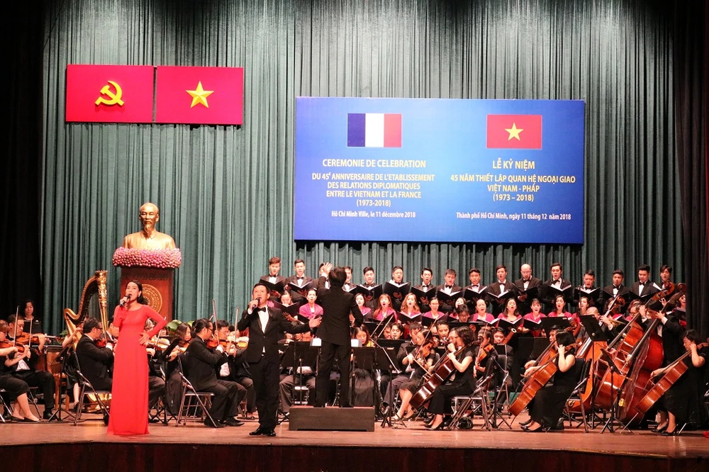 Buổi kỷ niệm do UBND TP.HCM tổ chức, đánh dấu chặng đường 45 năm thiết lập quan hệ ngoại giao và năm năm quan hệ đối tác chiến lược giữa nước Cộng hòa Xã hội chủ nghĩa Việt Nam và Cộng hòa Pháp.