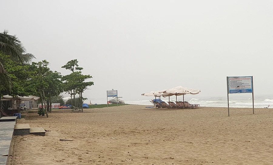 TP Sầm Sơn thực hiện cấm tắm biển từ 12 giờ trưa 26-8. Ảnh: ĐẶNG TRUNG