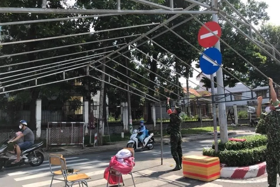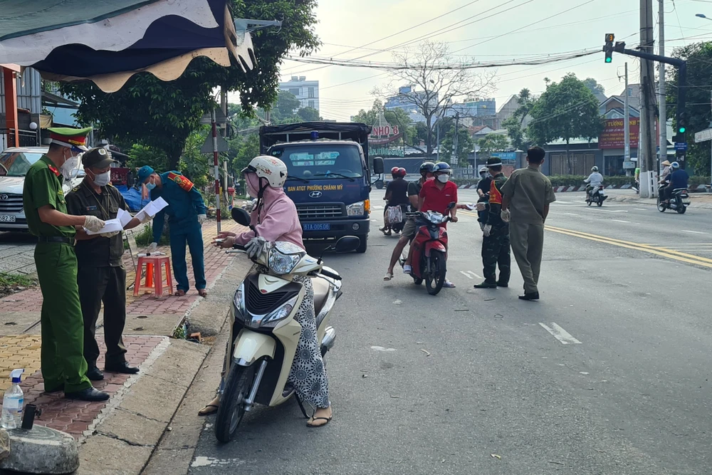 Theo ghi nhận vẫn còn 3 chốt kiểm soát vẫn được duy trì gồm: Chốt kiểm soát nằm trên đường Huỳnh Văn Cù (gần cầu Phú Cường), chốt kiểm soát tại ngã ba cây Trôm (phường Chánh Mỹ) và chốt kiểm soát trên đường Lê Chí Dân (gần ngã tư Sở Sao thuộc phường Hiệp An). Đây là các chốt nằm trên các tuyến đường hướng về cầu Phú Cường nơi giáp ranh với TP HCM. Việc duy trì các chốt này để tiếp tục kiểm soát không cho người dân tự ý đi sang các tỉnh khác. Ảnh: LÊ ÁNH