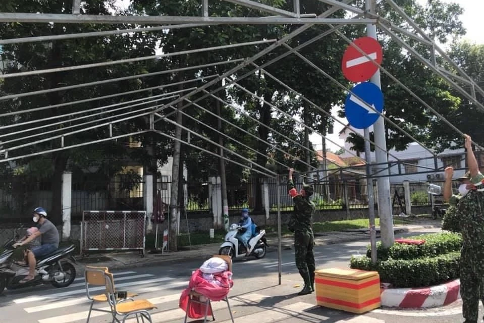 Chốt kiểm soát tại tuyến đường giao nhau giữa Đại lộ Bình Dương và đường Phú Lợi cũng được tháo dỡ, chỉ còn một nhà bạt. Ảnh: LÊ ÁNH