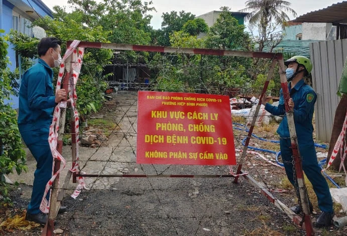 Phong tỏa khu vực có ca nhiễm SARS-CoV-2 trên địa bàn TP Thủ Đức. Ảnh: HCDC