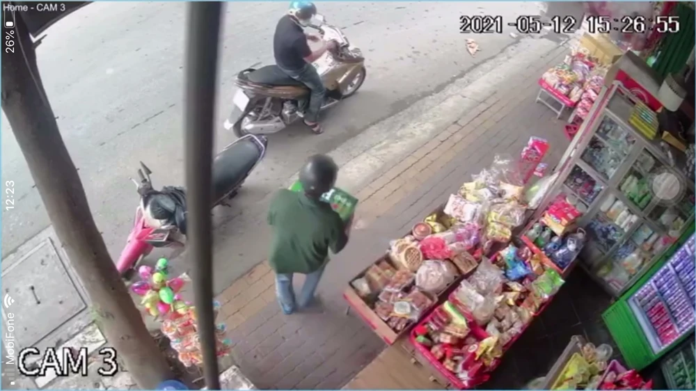 Camera ghi lại hình ảnh cả hai nhiều lần cướp giật bia trên địa bàn TP Thủ Đức. Ảnh cắt từ clip