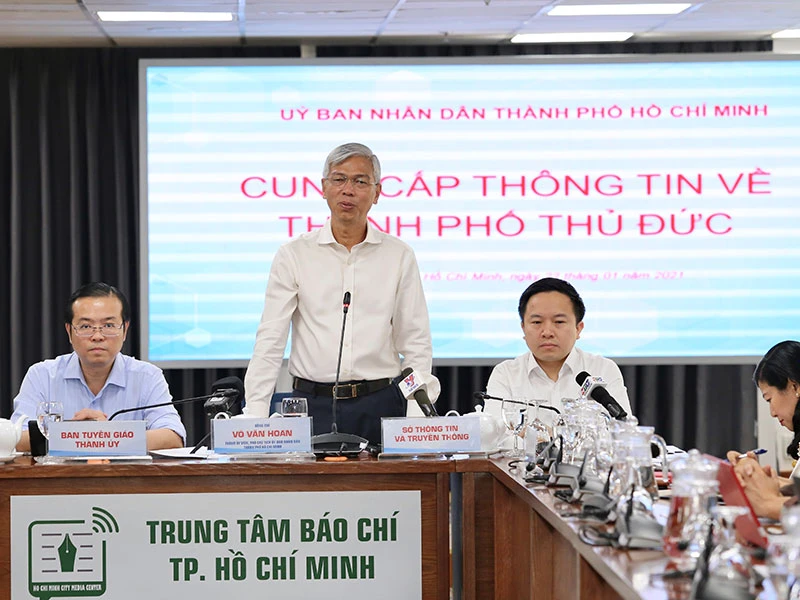 Phó Chủ tịch UBND TP.HCM Võ Văn Hoan thông tin về TP Thủ Đức. Ảnh: HOÀNG GIANG