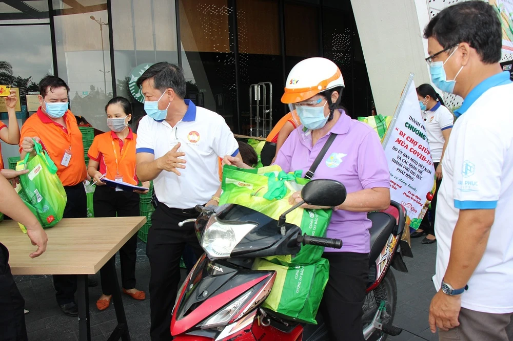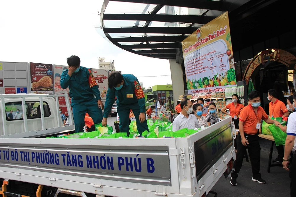 Trong sáng cùng ngày, TP Thủ Đức đã trao đi cho 649 hộ dân đang thực hiện các biện pháp cách ly y tế tại 64 điểm trên địa bàn TP Thủ Đức.
