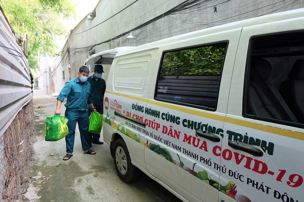 Sáng 5-6, Ủy ban MTTQ Việt Nam TP Thủ Đức cùng các đơn vị, doanh nghiệp đã tổ chức "Siêu thị nghĩa tình Thủ Đức" và vận hành mô hình "Đi chợ giúp người dân mùa COVID-19" nhằm chăm lo, hỗ trợ các đồ dùng thiết yếu cho các hộ dân trong khu vực bị phong tỏa, cách ly.