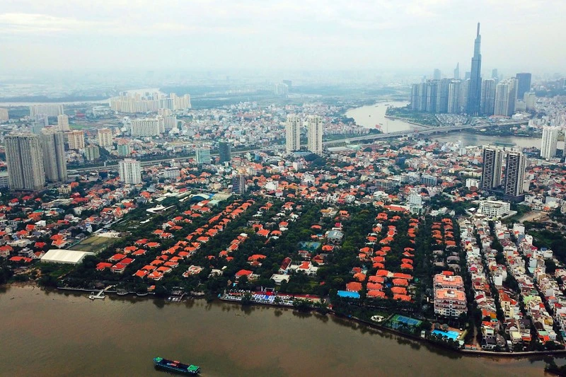 Một góc quận 2, TP.HCM nhìn từ trên cao. Ảnh: HOÀNG GIANG