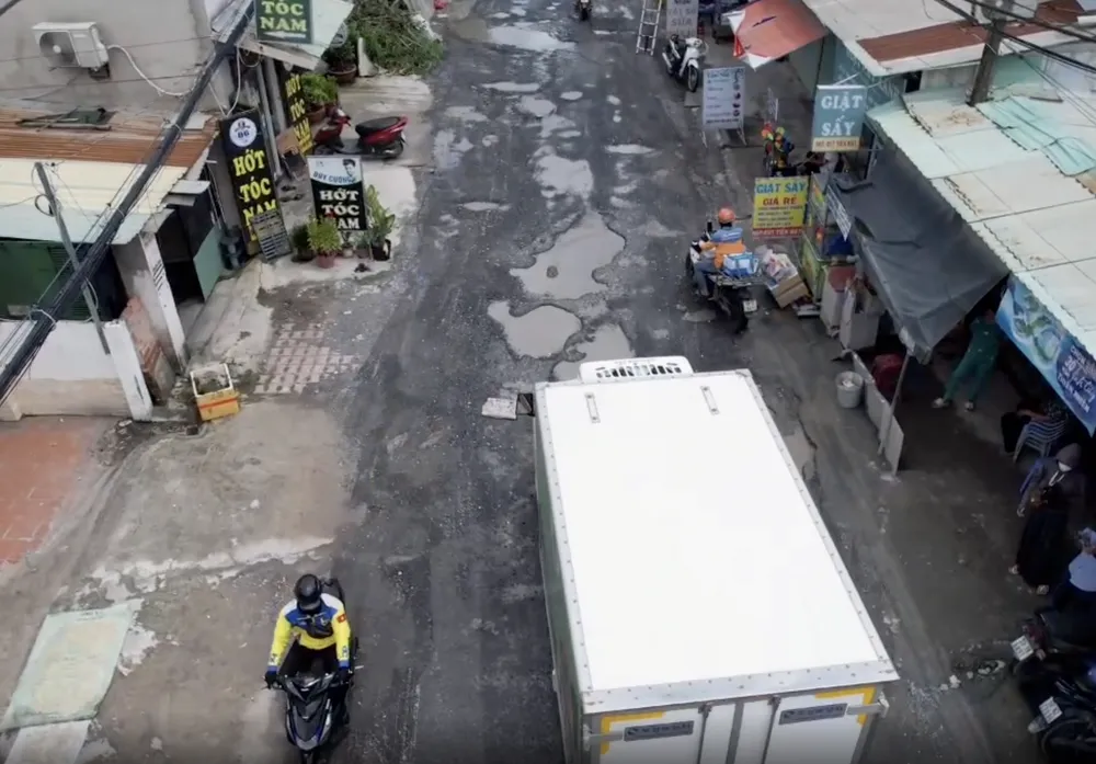 Đường Bưng Ông Thoàn nhiều vũng nước lớn, sâu. Ảnh: ĐT |