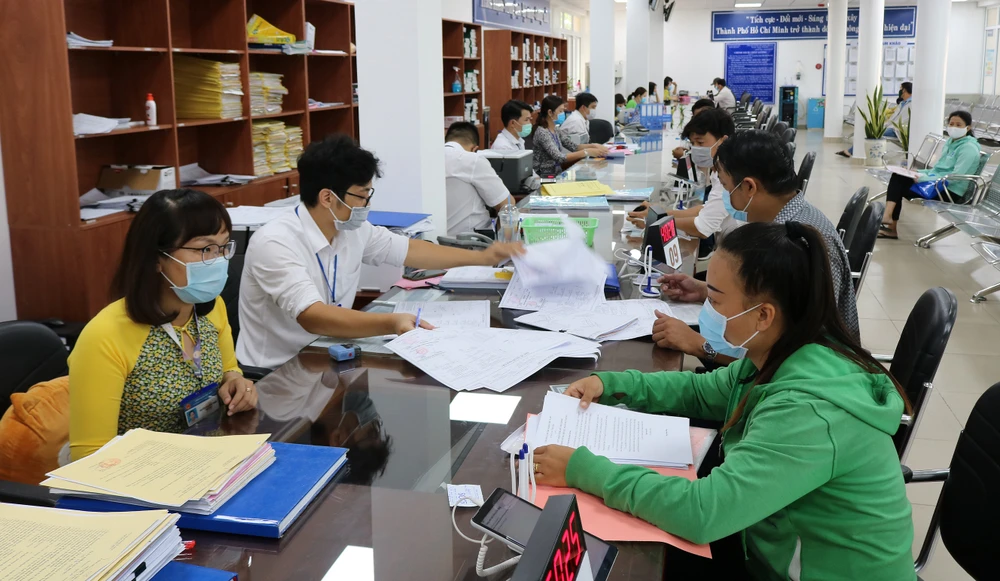 Cán bộ UBND quận Thủ Đức, TP.HCM đang giải quyết thủ tục cho người dân. Ảnh: THANH TUYỀN