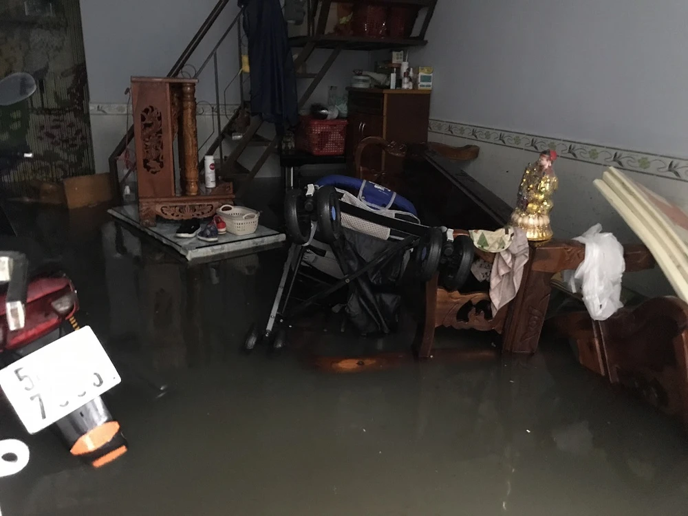 Nhà có hai con nhỏ, chị Hạnh cho biết khi thấy nước tràn vào liền bế con vào chiếc giường đã được kê cao để tránh nhưng vẫn không kịp. “Nhìn ra ngoài thì nước lênh láng, bên trong con khóc vì sợ khiến tôi thật sự rất hoảng”- chị nói.