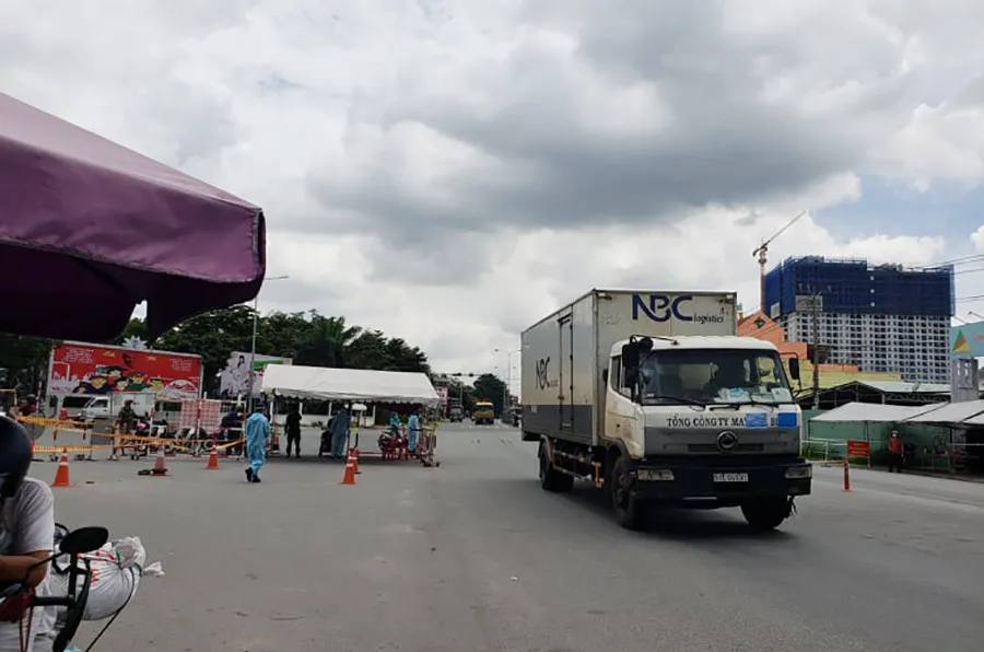 Chốt kiểm soát dịch tại quốc lộ 1K, giáp ranh giữa TP Thủ Đức và tỉnh Bình Dương. Ảnh: TS