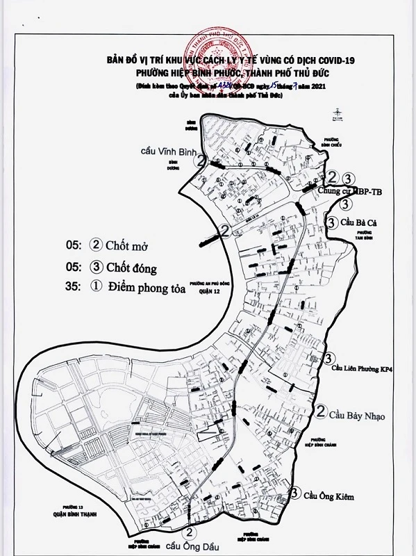 Phạm vi phong tỏa phường Hiệp Bình Phước. Ảnh: UBND TP Thủ Đức