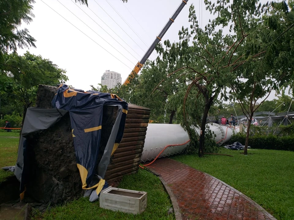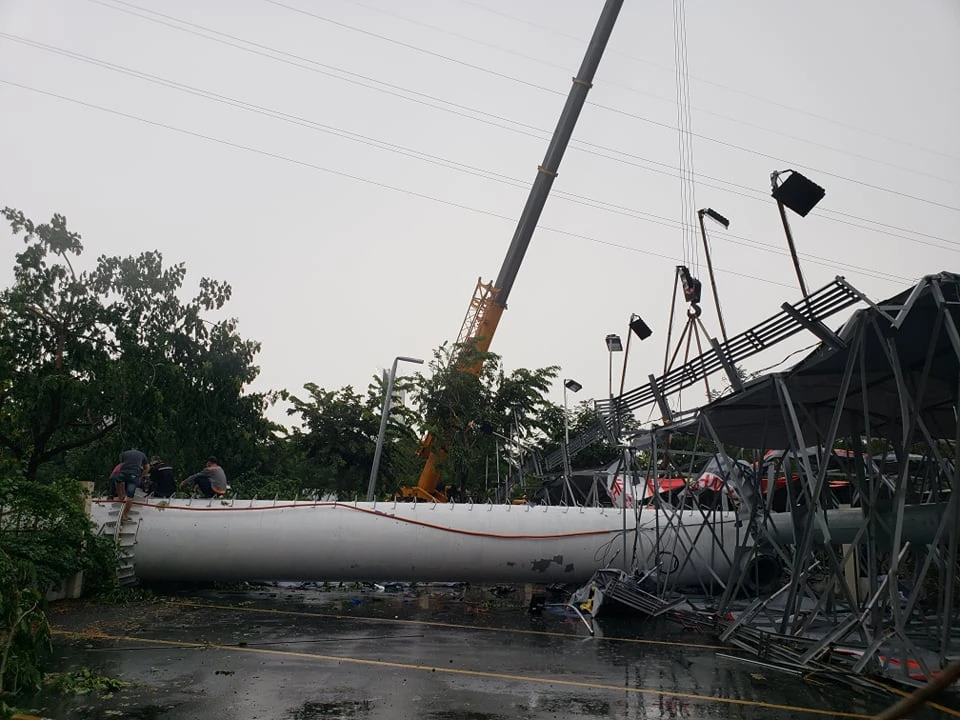 Biển quảng cáo cao khoảng 40 mét, đường kính 4 mét bị ngã. Ảnh: TS