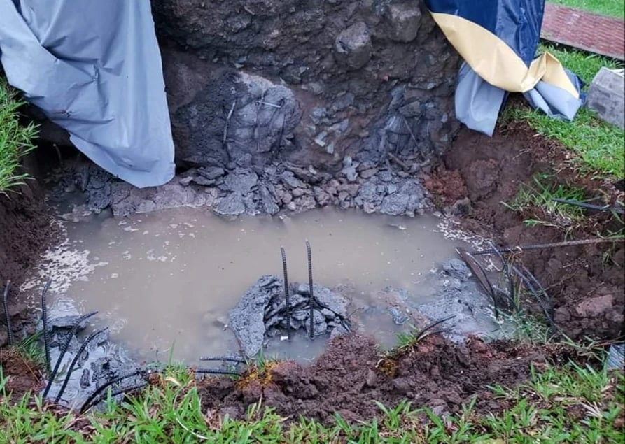 Móng trụ quảng cao sâu khoảng 50 cm, nhiều thép có dấu hiệu bị gãy. Ảnh: TS