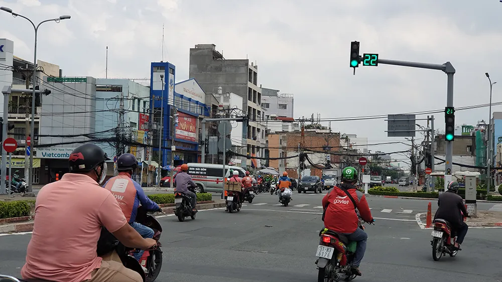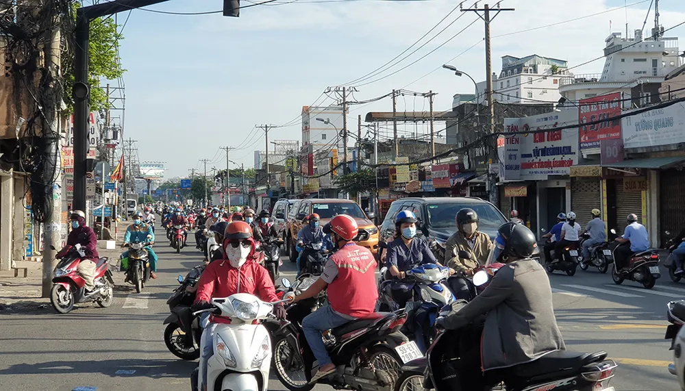 Người dân tham gia giao thông chụp ngày 17-8 trên ở ngã tư Bảy Hiền. Ảnh NT