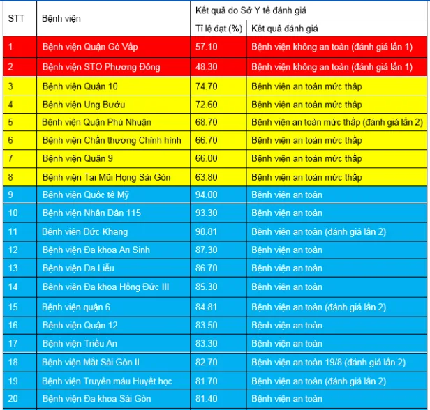 Sở Y tế TP.HCM cho biết thêm đoàn kiểm tra quyết định đánh giá lại lần 2 sau 1 tuần đối với tất cả BV còn ở mức không an toàn trong lần đánh giá thứ nhất. Do vậy, đây là thời gian cần thiết để các BV rà soát và khẩn trương bổ sung những tiêu chí còn thiếu.