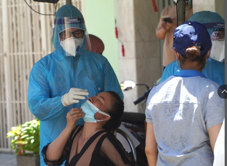 Cơ quan y tế lấy mẫu xét nghiệm những người tiếp xúc con của bệnh nhân COVID-19. Ảnh: MINH TÂM