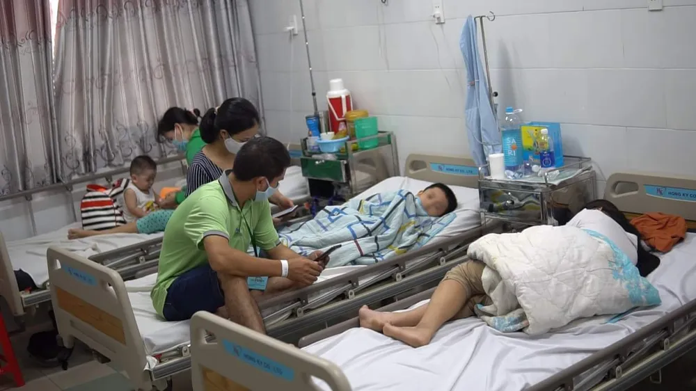 Các em học sinh Trường Tiểu học Bình Trưng Đông đang điều trị tại Khoa Nhi, Bệnh viện Quận 2. Ảnh: BVCC