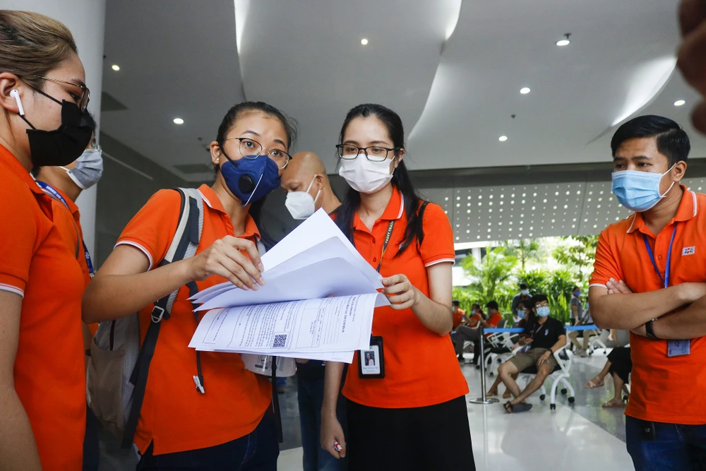 Trước khi tiêm, nhân viên công ty được tư vấn về loại vaccine mình sẽ tiêm. Chị Nguyễn Thị Hồng (ngụ TP Thủ Đức) cho biết: "Trước khi đến đây tiêm, tôi đã tìm hiểu về các tác dụng phụ có thể xảy ra sau tiêm nên đã chuẩn bị tinh thần".