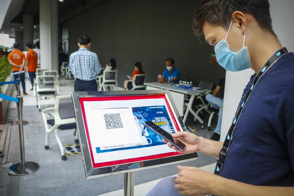 Nhân viên phải khai báo y tế trước khi nhận giấy điền các thông tin liên quan. Việc khai báo y tế được thực hiện bằng quét mã QR.
