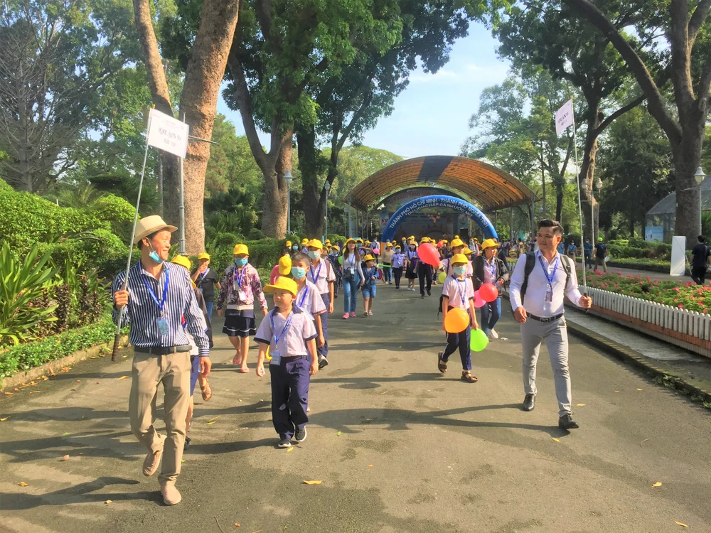 Ngay sau lễ phát động, 500 thiếu nhi các quận huyện bắt đầu tham các điểm đến TP.HCM . Ảnh: TÚ UYÊN