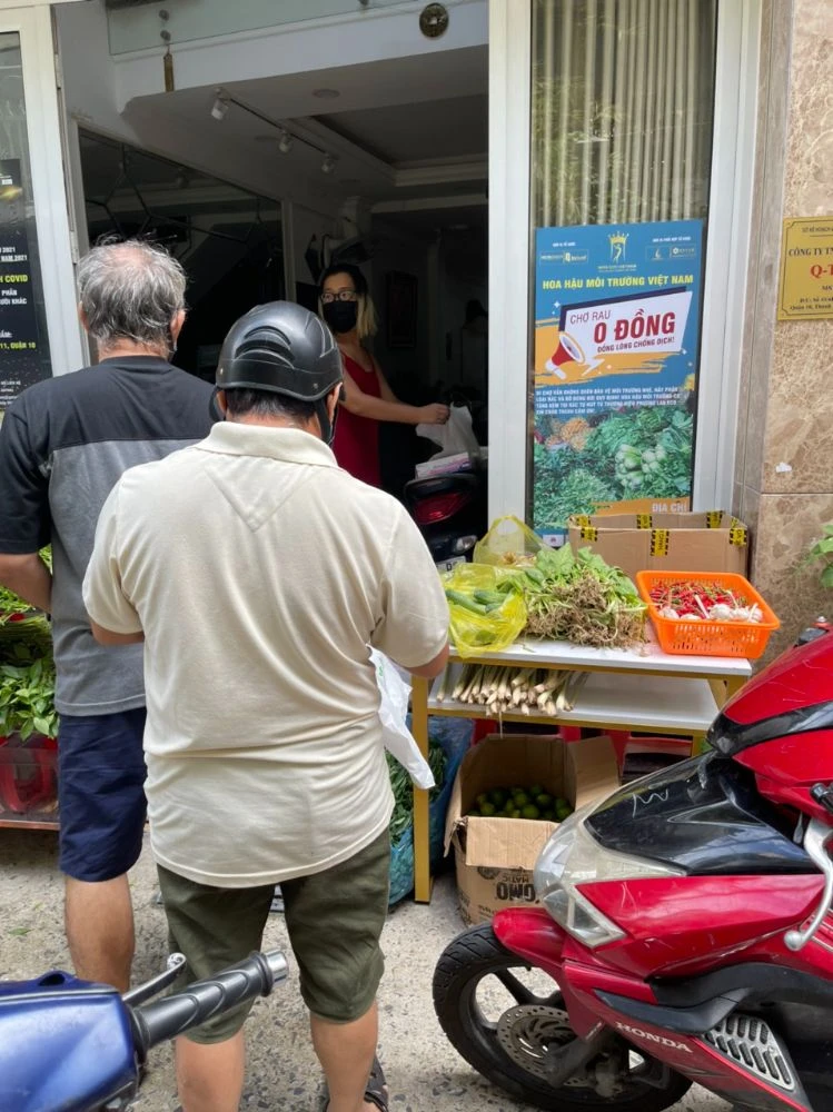 Ngày 21-7, tại hai địa điểm 45/6B, đường 3/2 (quận 10) và 601/3, lô A- Cách mạng tháng 8 (quận 10), đại diện của Ban Tổ chức cuộc thi Hoa hậu Môi trường Việt Nam đã đứng ra gửi tặng hơn nửa tấn rau, củ, quả cho bà con lao động nghèo và gửi đến những khu phố bị cách ly, phong tỏa.