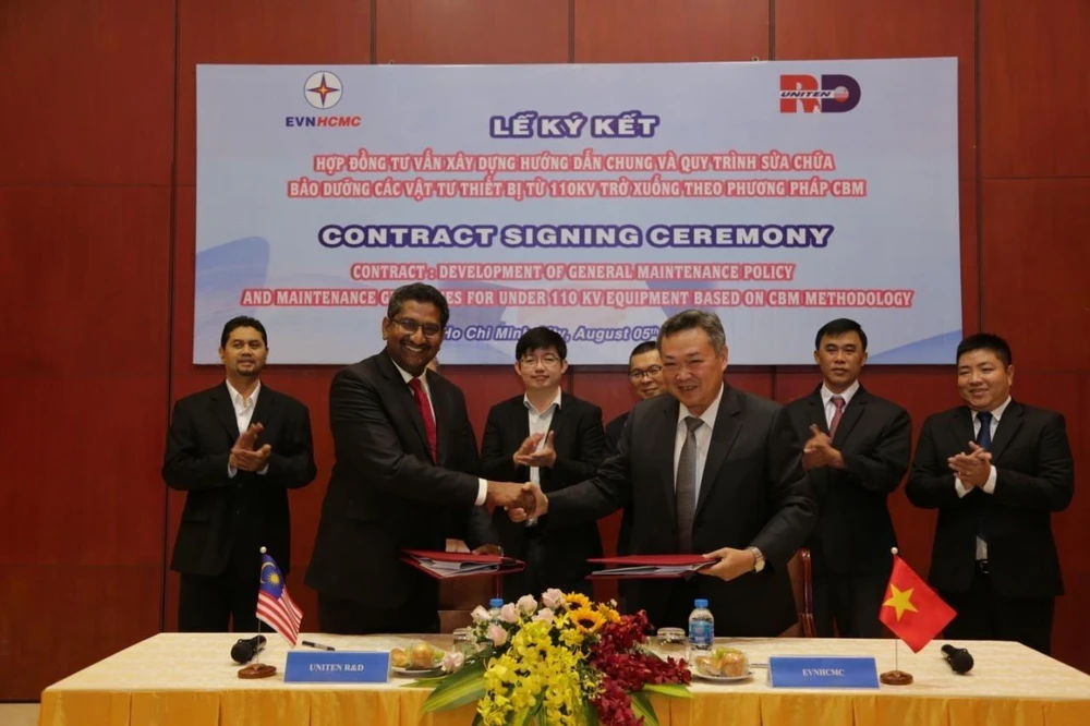 Chiều 5-8, Tổng Công ty điện lực TP.HCM (EVN HCMC) đã ký “Hợp đồng tư vấn xây dựng hướng dẫn chung và quy trình sửa chữa các vật tư, thiết bị điện từ 110 kV trở xuống theo phương pháp CBM” (Conditon – Based Maintenance) với Viện nghiên cứu Uniten R&D thuộc Điện lực TNB – Malaixia.