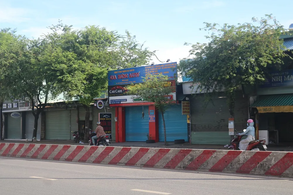 Nhiều cửa hàng trên đường Lê Trọng Tấn (Tân Phú) đóng cửa. Ảnh: KHÁNH CHI