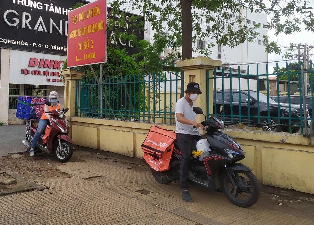Nhiều shipper lo lắng vì phải tiếp xúc với nhiều người trong mùa dịch, nhưng vẫn cố gắng để trang trải cuộc sống. Ảnh: KHÁNH CHI