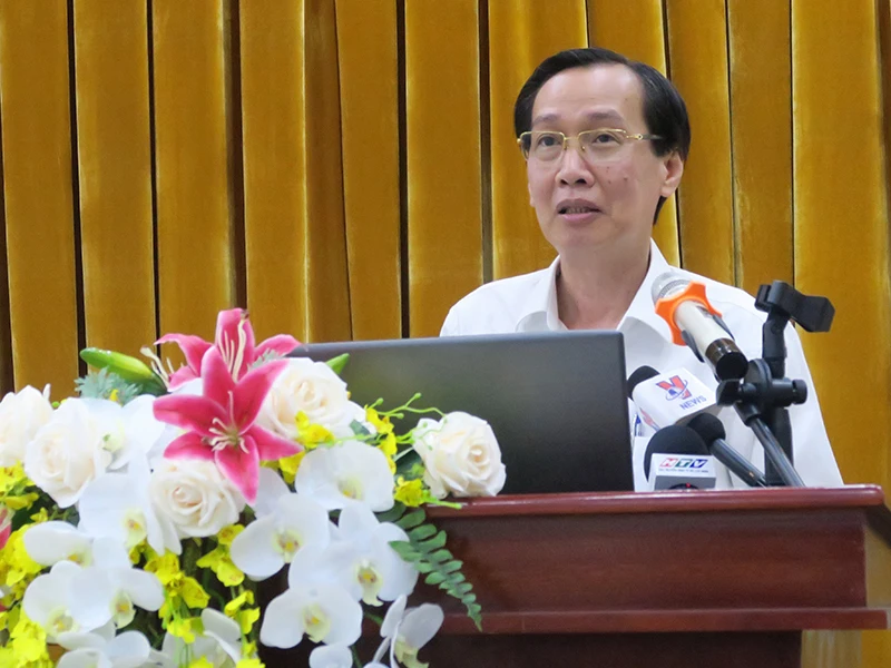 Phó Chủ tịch UBND TP.HCM Lê Thanh Liêm phát biểu tại buổi làm việc với đoàn công tác Bộ Y tế. Ảnh: TTXVN