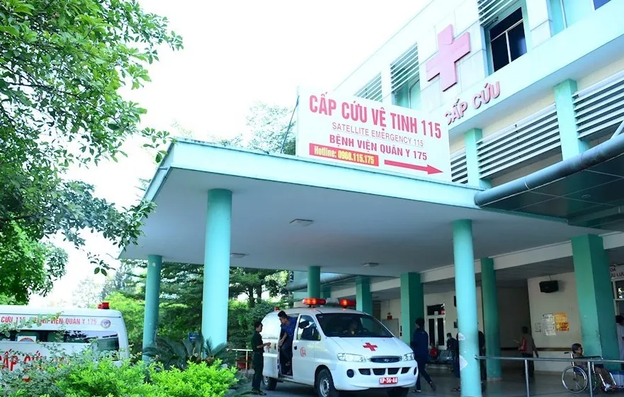 Bệnh viện Quân y 175, nơi tiếp nhận hai em học sinh của vụ tai nạn xe máy. Ảnh: TU