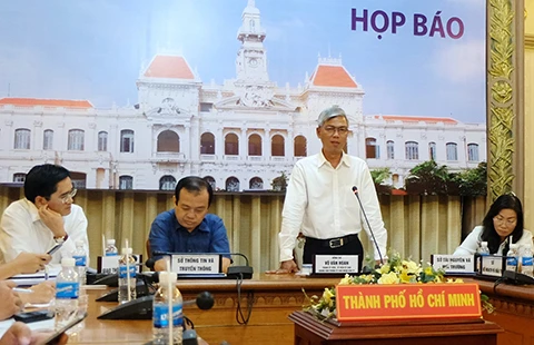 Ông Võ Văn Hoan, Chánh Văn phòng UBND TP.HCM, chủ trì cuộc họp báo ngày 29-2. Ảnh: VIỆT HOA