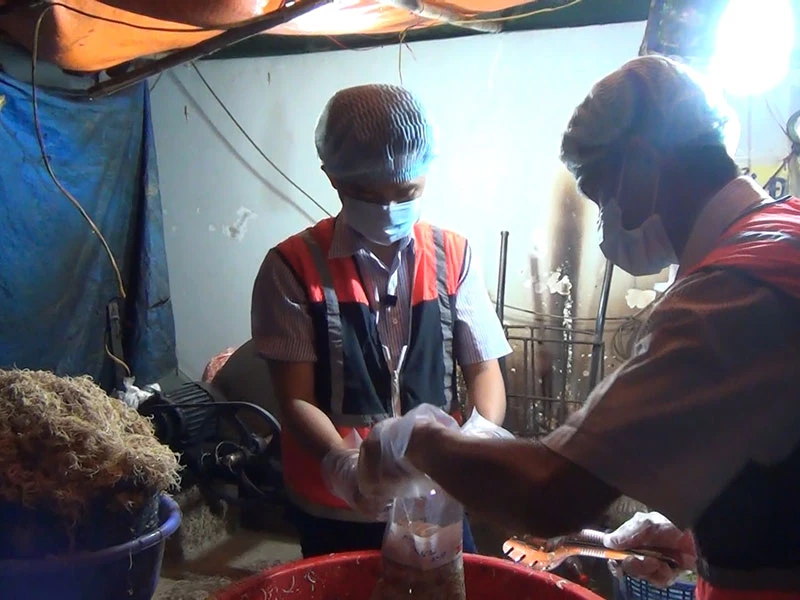 Rạng sáng 26-4, Đội 3 - Phòng Cảnh sát phòng, chống tội phạm về môi trường, Công an TP.HCM ập đến cơ sở chuyên cung cấp bắp chuối bào nằm trên đường số 6, phường Linh Chiểu, quận Thủ Đức.