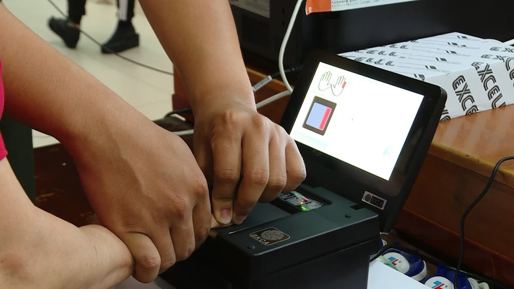 Công dân làm thủ tục lấy dấu vân tay. Ảnh: N.TÂN