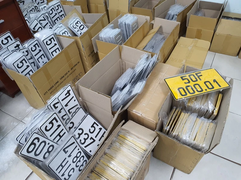 Các loại biển số được tập hợp tại Đội Đăng ký phương tiện giao thông cơ giới đường bộ (quận Bình Thạnh, TP.HCM)