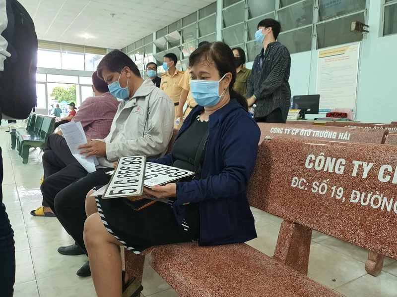 Tại đây cũng có nhiều người đến đăng ký biển số mới.