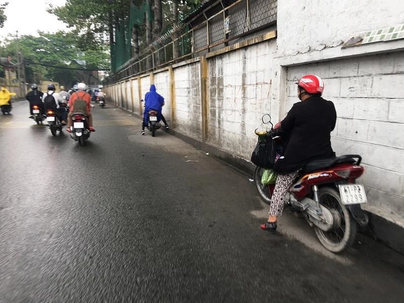 Mưa lớn khiến người đi đường không kịp chở tay. Ảnh: ĐÀO TRANG.