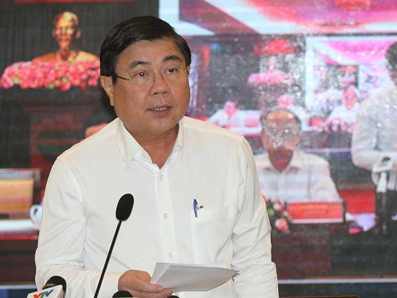 Chủ tịch UBND TP.HCM Nguyễn Thành Phong tại hội nghị. Ảnh: VH