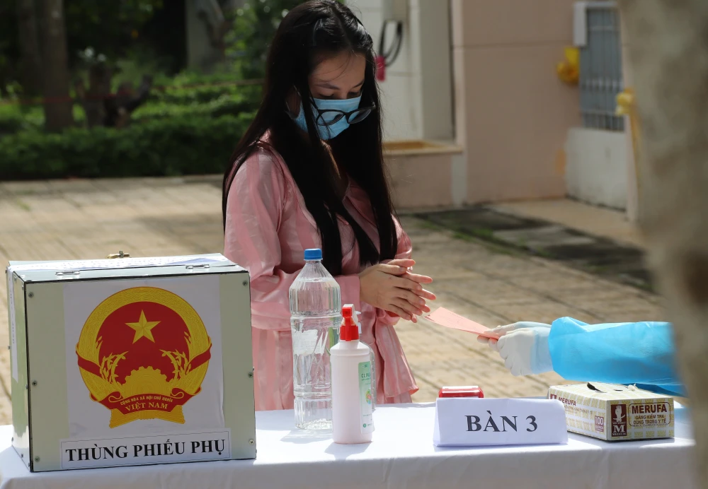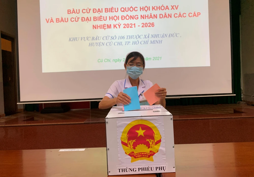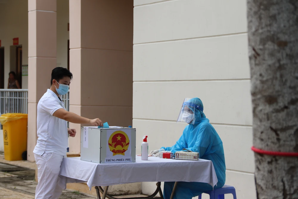 Sáng 23-5, tại Bệnh viện dã chiến Củ Chi (xã Nhuận Đức, huyện Củ Chi, TP.HCM), 142 cử tri gồm 14 nhân viên y tế, 36 người bệnh đang điều trị tại nơi đây và 92 người đang cách ly tập trung tại khu C trong khuôn viên bệnh viện đã tiến hành bầu cử, bỏ lá phiếu tín nhiệm các ứng cử viên.