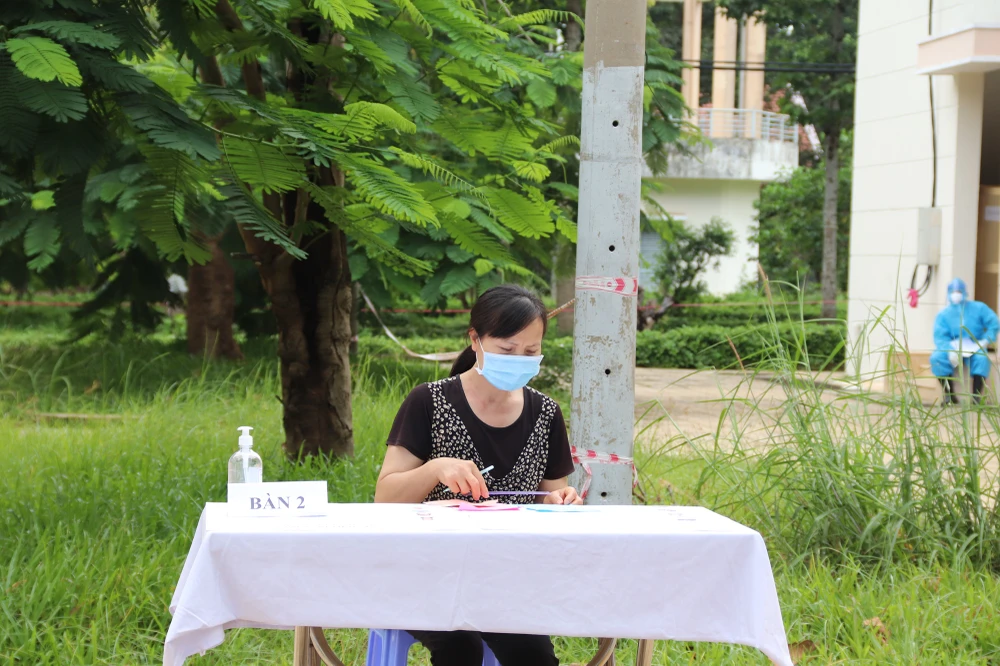 Cử tri trong khu vực cách ly tập trung đang bỏ phiếu. Ảnh: TRẦN NGỌC