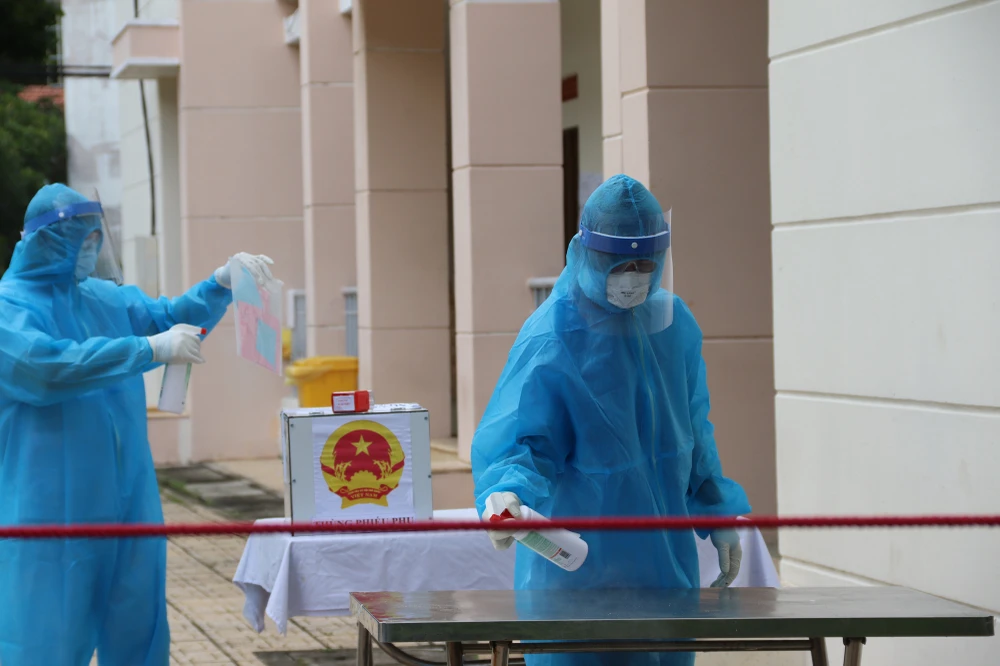 Theo ông Huy, khi tất cả cử tri tại khu vực cách ly tập trung đã bỏ phiếu, thùng phiếu và toàn bộ khu vực bỏ phiếu được khử khuẩn bằng tia cực tím. Phiếu bầu của cử tri trong khu vực cách ly tập trung được kiểm cuối cùng để phòng tránh nguy cơ lây nhiễm COVID-19. TRẦN NGỌC