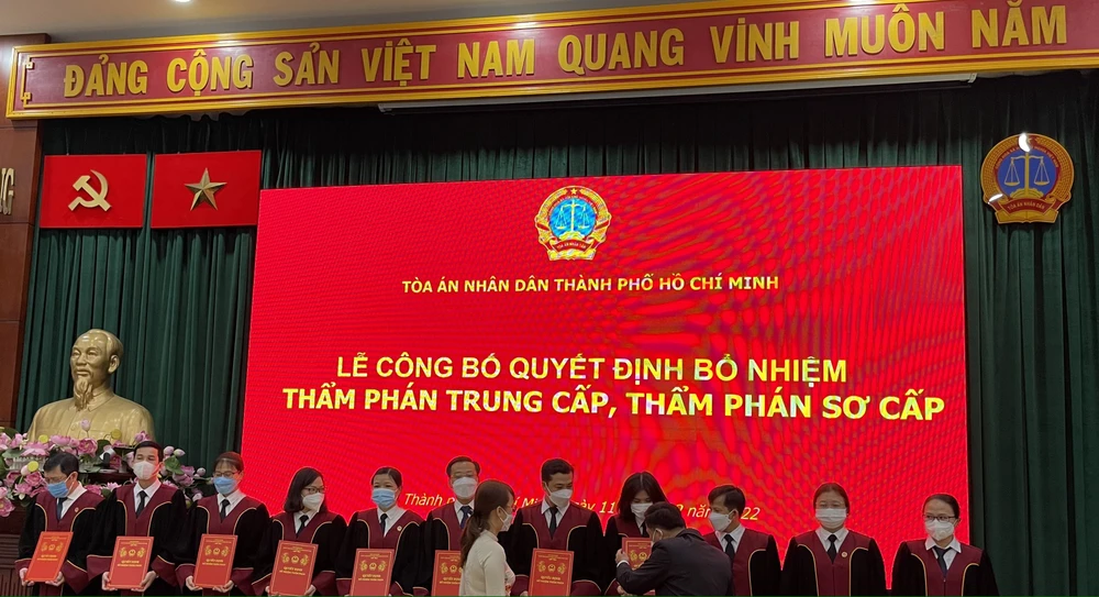 11 ông bà thẩm phán sơ cấp TAND quận huyện 1, 5, 8, Nhà Bè, Tân Bình,Củ Chi, Bình Chánh được Chủ tịch nước bổ nhiệm giữ chức danh thẩm phán trung cấp.