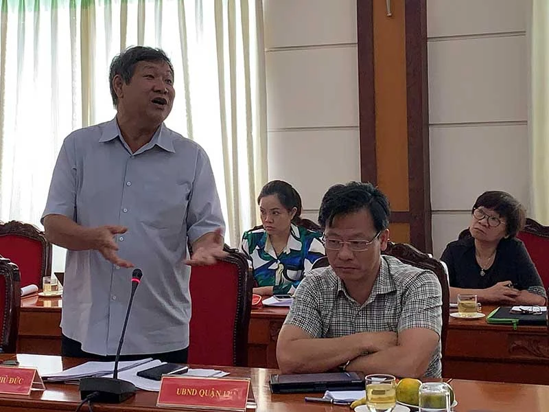 Ông Nguyễn Quang Phước, Trưởng ban BTGPMB quận Thủ Đức, nêu nhiều khó khăn trong quá trình bồi thường, hỗ trợ, tái định cư để thu hồi đất thực hiện dự án trên địa bàn quận. Ảnh: VIỆT HOA