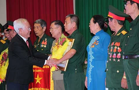 Chủ tịch UBND TP.HCM Lê Hoàng Quân trao danh hiệu Anh hùng LLVTND cho các tập thể, cá nhân. Ảnh: T.KHUÊ
