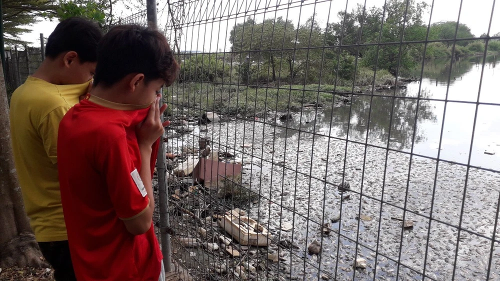 Mùi cá chết khiến người dân phải bịt mũi khi đến gần. Ảnh: TRẦN NGỌC