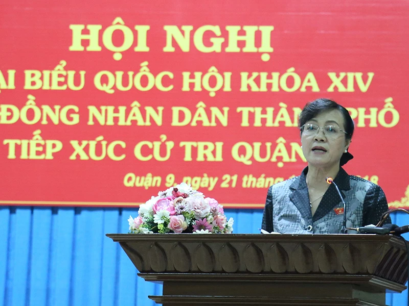 Sáng 21-11, Phó Bí thư Thành ủy, Chủ tịch HĐND TP.HCM Nguyễn Thị Quyết Tâm cùng các đại biểu Quốc hội (ĐBQH) Phan Nguyễn Như Khuê, Phó Trưởng đoàn chuyên trách Đoàn ĐBQH TP.HCM và bà Trịnh Ngọc Thúy, Phó Chánh án TAND TP, đã có buổi tiếp xúc với cử tri quận 9.