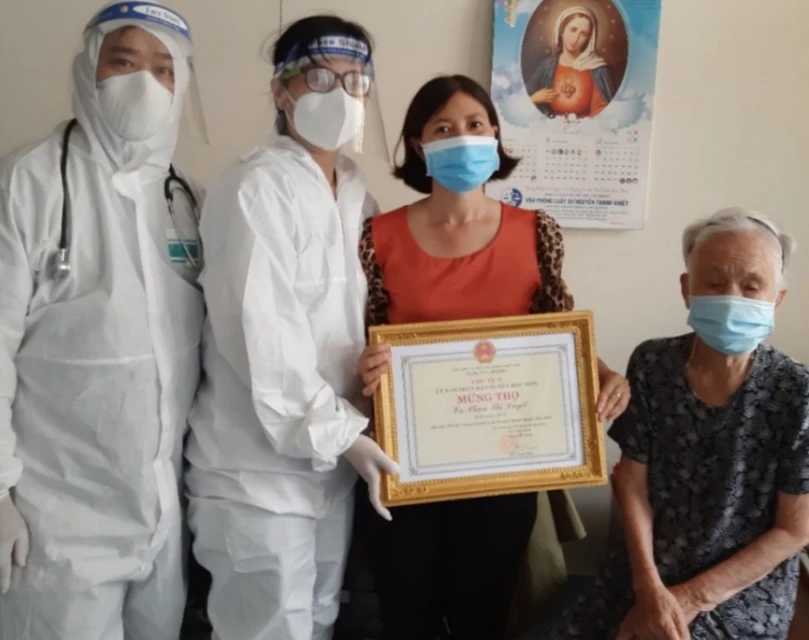 “Dịp may cũng tới. Nhân dịp mẹ tôi 105 tuổi, Nhà nước có giấy mừng thọ kèm 1 triệu đồng gửi tặng. Chính quyền địa phương cùng gia đình tôi bàn bạc và thống nhất vừa gửi mẹ tôi quà mừng thọ, vừa thuyết phục bà tiêm vaccine ngay tại nhà” – con bà Duyệt nói.
